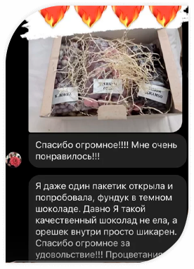 Все пробовали шоколадку с лесными орехами. Правда в нашем случае и фундук в разы крупнее, и шоколад вкуснее. Часто слышим от покупателей фразу «Я в шоке, шоколад прям как раньше»