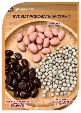 Хрустящий отборный миндаль в йогурте с добавлением натуральной сублимированной брусники, которая добавляет продукту кислинку.